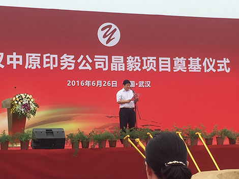 東西湖臺商投資區(qū)主任代表東西區(qū)各級領(lǐng)導(dǎo)發(fā)表重要講話,對武漢中原印務(wù)公司晶毅項目在此舉行奠基表示最衷心的祝賀和寄予深切的厚望!