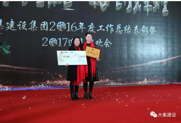 為樹立典型、激勵先進(jìn),讓廣大員工在工作中奮勇向前,形成人人爭先的良好企業(yè)文化氛圍,2016年大集建設(shè)總結(jié)表彰大會上,集團(tuán)公司副總吳家珍女士代表集團(tuán)公司宣讀了《關(guān)于表彰2016年度優(yōu)秀、先進(jìn)集體與個人的決定》,并邀請嘉賓上臺頒發(fā)了五大獎項(xiàng)及先進(jìn)個人獎:特別敬業(yè)獎、特殊貢獻(xiàn)獎、先進(jìn)部門、優(yōu)秀項(xiàng)目部和外部業(yè)務(wù)拓展獎。
