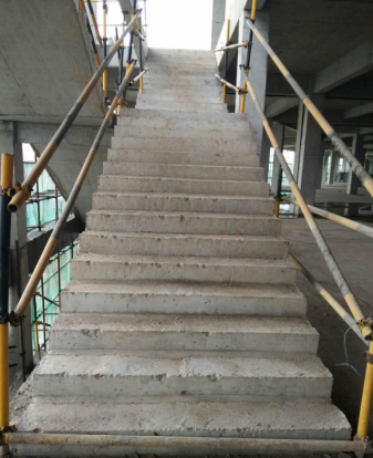 踏上樓梯,腳下的臺階邊角順直,角度方正平整,線條清晰,接頭平整,觀感度較好。
