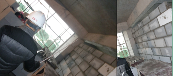 邁入三樓,王工更是拿出尺子,用精細的數(shù)據(jù)去檢驗工程的品質(zhì),他仔細測量了磚砌體頂部斜砌留置位置的大小,角度,認真向大家介紹了磚砌體施工要求以及不規(guī)范施工帶來的后果,并對16號樓規(guī)范的磚砌體作業(yè)予以高度評價,16號樓磚砌體灰縫均勻、順直、密實,基礎(chǔ)處理較好;拖墻筋植筋合規(guī);頂部斜砌留置合規(guī);墻體觀感度良好,整體質(zhì)量優(yōu)良!
