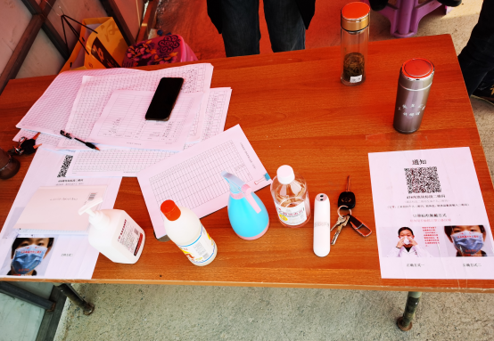 出入口安排專員進(jìn)行信息登記、測溫、消毒