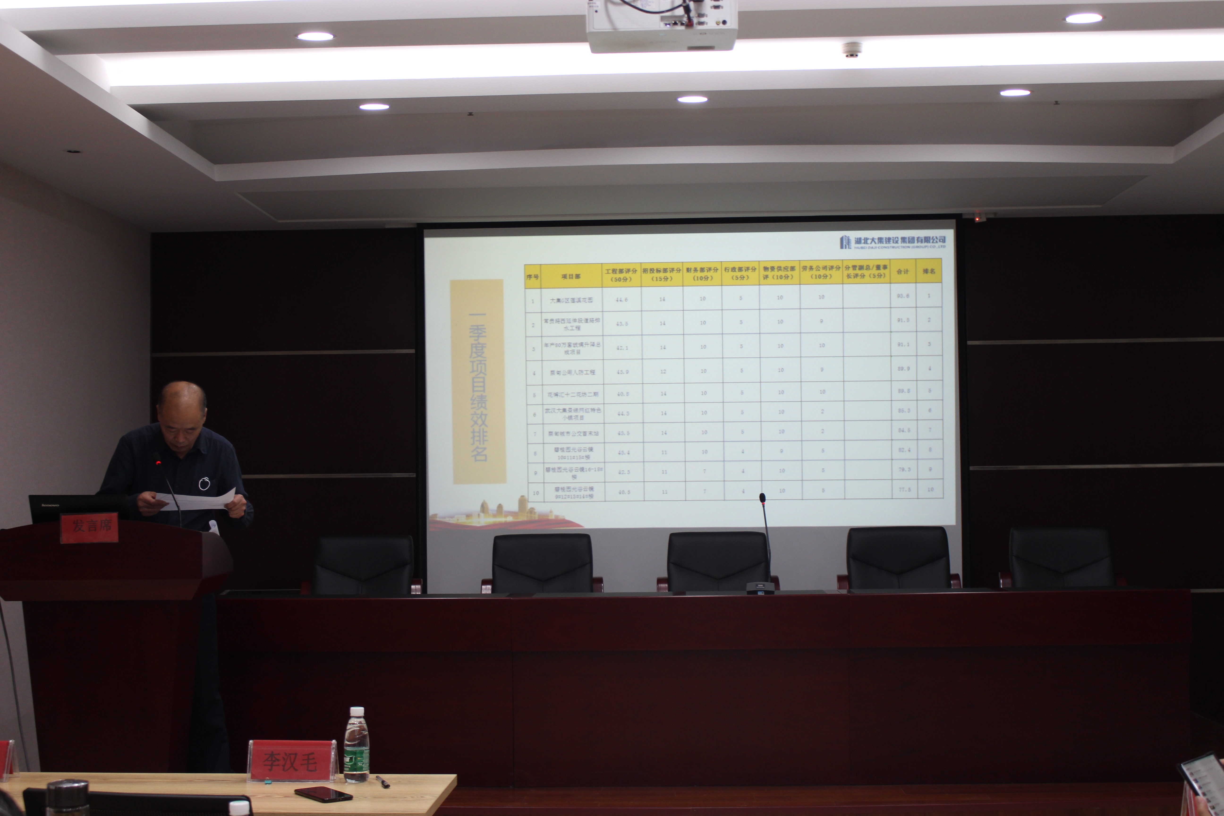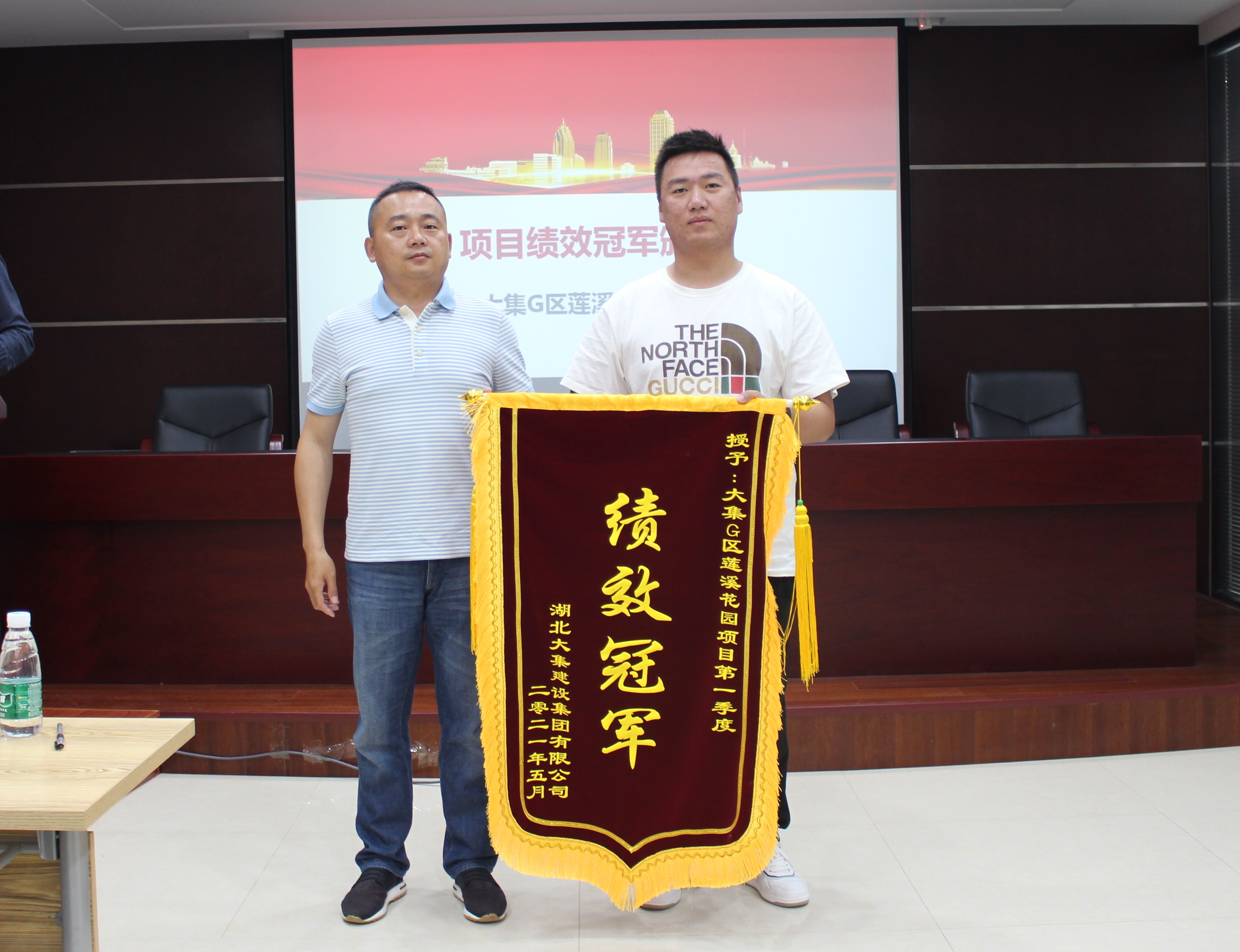隨后,行政部部長李漢毛公布項(xiàng)目第一季度績效考核排名,并由集團(tuán)公司董事長徐濤為第一季度項(xiàng)目績效冠軍——大集G區(qū)蓮溪花園項(xiàng)目頒發(fā)錦旗及獎(jiǎng)金。