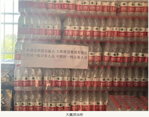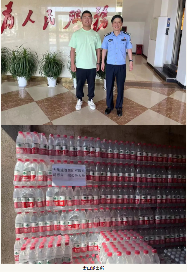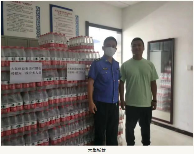 活動中,湖北大集建設集團分別向大集城管、大集派出所、大集交通隊、奓山派出所和奓山交通隊贈送了100箱礦泉水和20箱紅茶,并表達了對一線民警、交警和城管人員在高溫下堅守崗位的衷心感謝!