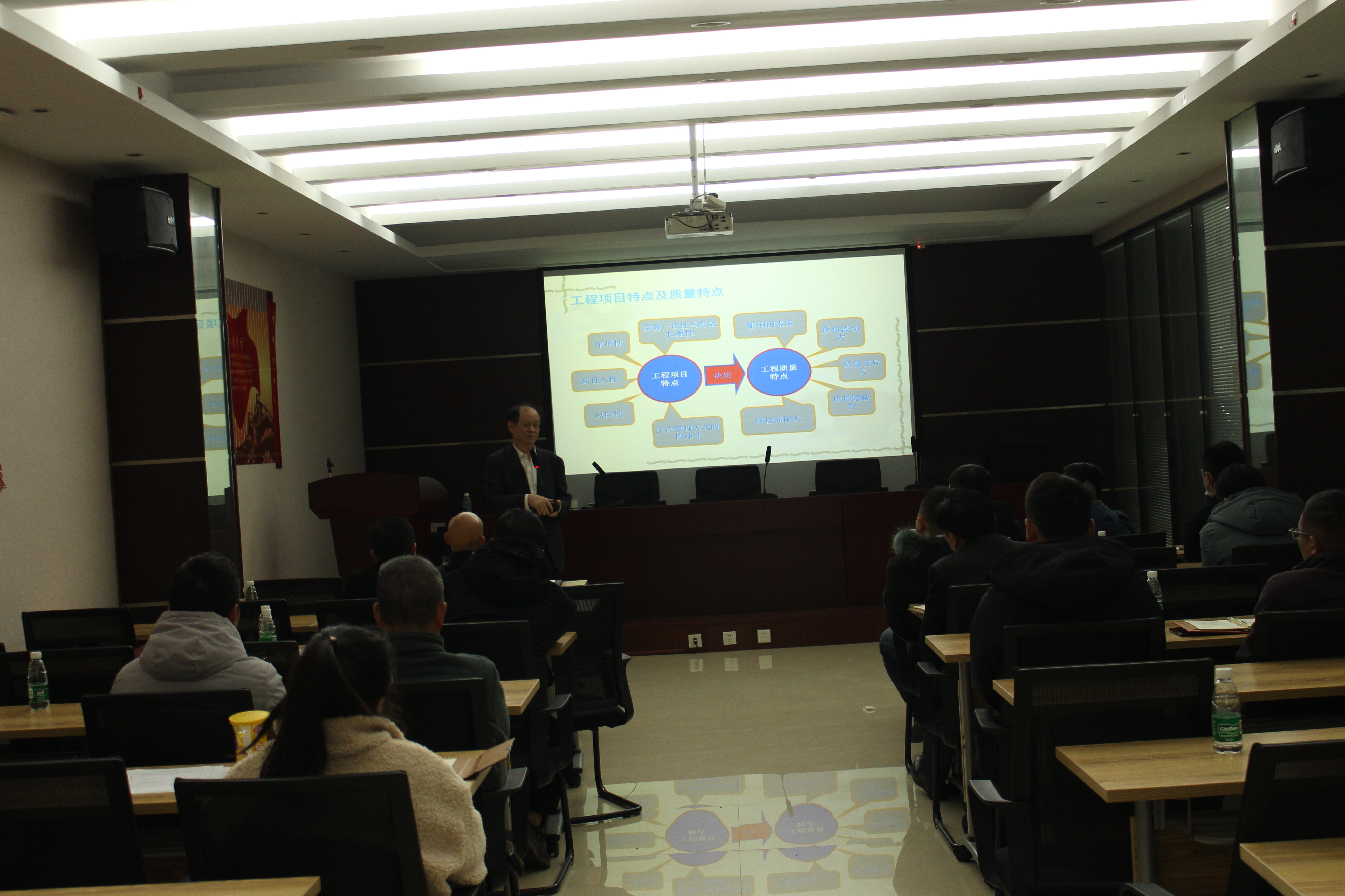 主講老師從工程師之戒·上世紀(jì)十大技術(shù)失誤、對工程師或未來的工程師的幾點善意忠告、施工項目質(zhì)量控制原理三個方面進行授課。著重講解了工程建設(shè)程序、施工質(zhì)量控制的概念和原理、工程施工質(zhì)量控制、施工質(zhì)量控制的統(tǒng)計分析、質(zhì)量管理體系標(biāo)準(zhǔn),并強調(diào)建筑工程應(yīng)遵循“材料是基礎(chǔ)、設(shè)計是前提、施工是關(guān)鍵、管理是保證”的原則。授課中,老師理論結(jié)合實際、課件圖文并茂、內(nèi)容豐富易懂,講解清晰透徹,參訓(xùn)員工受益匪淺。