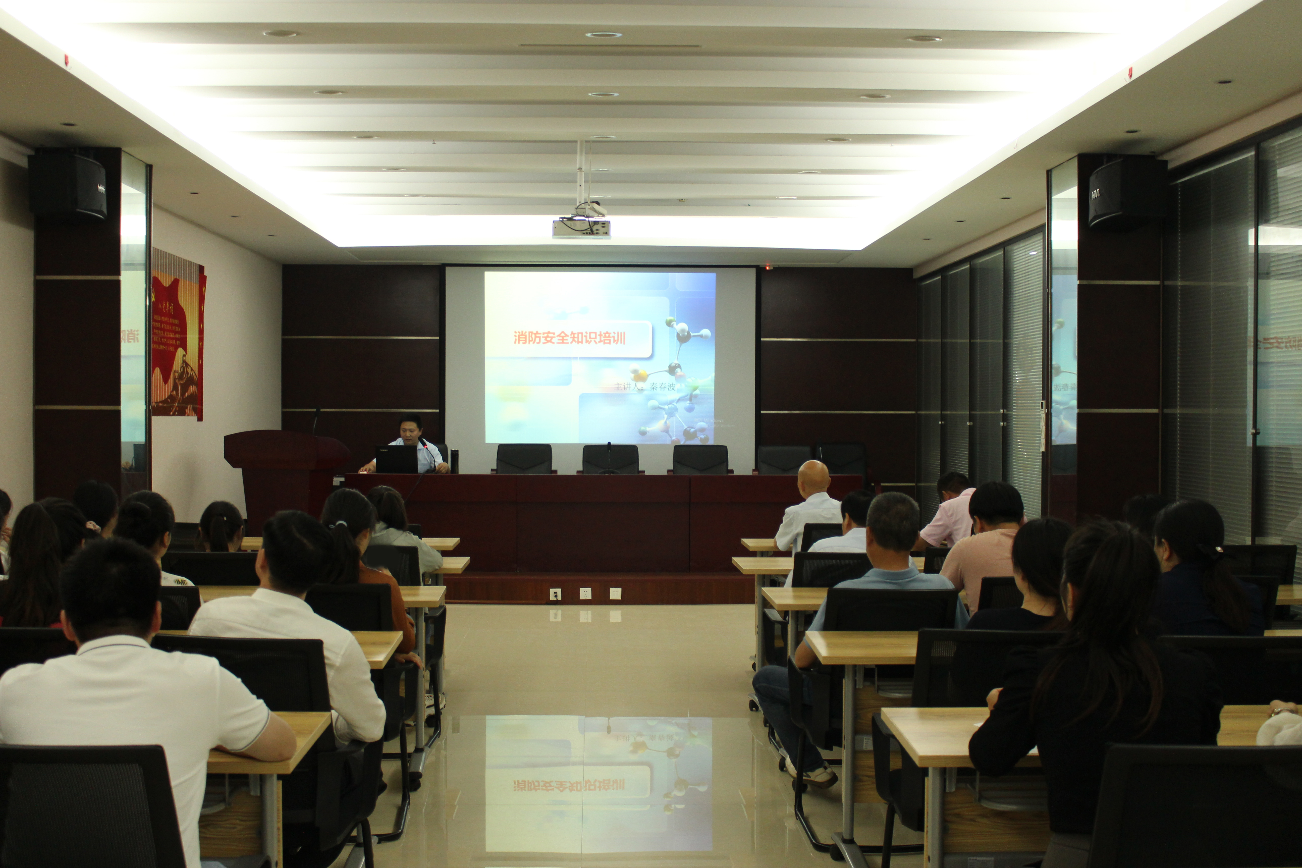 演練開始前,工程部安全主管秦春波對全體員工進行了消防安全知識培訓,向大家詳細講解了火災基本常識、滅火基本常識、火災逃生知識。
