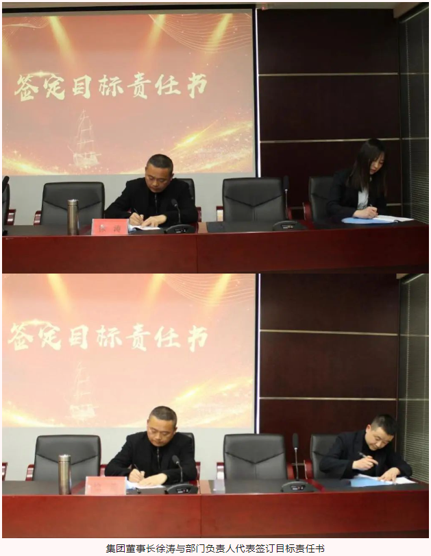 在2024年目標(biāo)責(zé)任書簽訂儀式上,集團董事長、總經(jīng)理、副總經(jīng)理依次與部門負(fù)責(zé)人代表、項目代表簽訂目標(biāo)責(zé)任書。責(zé)任書不僅僅是一紙文件,它承載著集團的期望與信任,代表著責(zé)任與擔(dān)當(dāng),猶如千鈞之重。