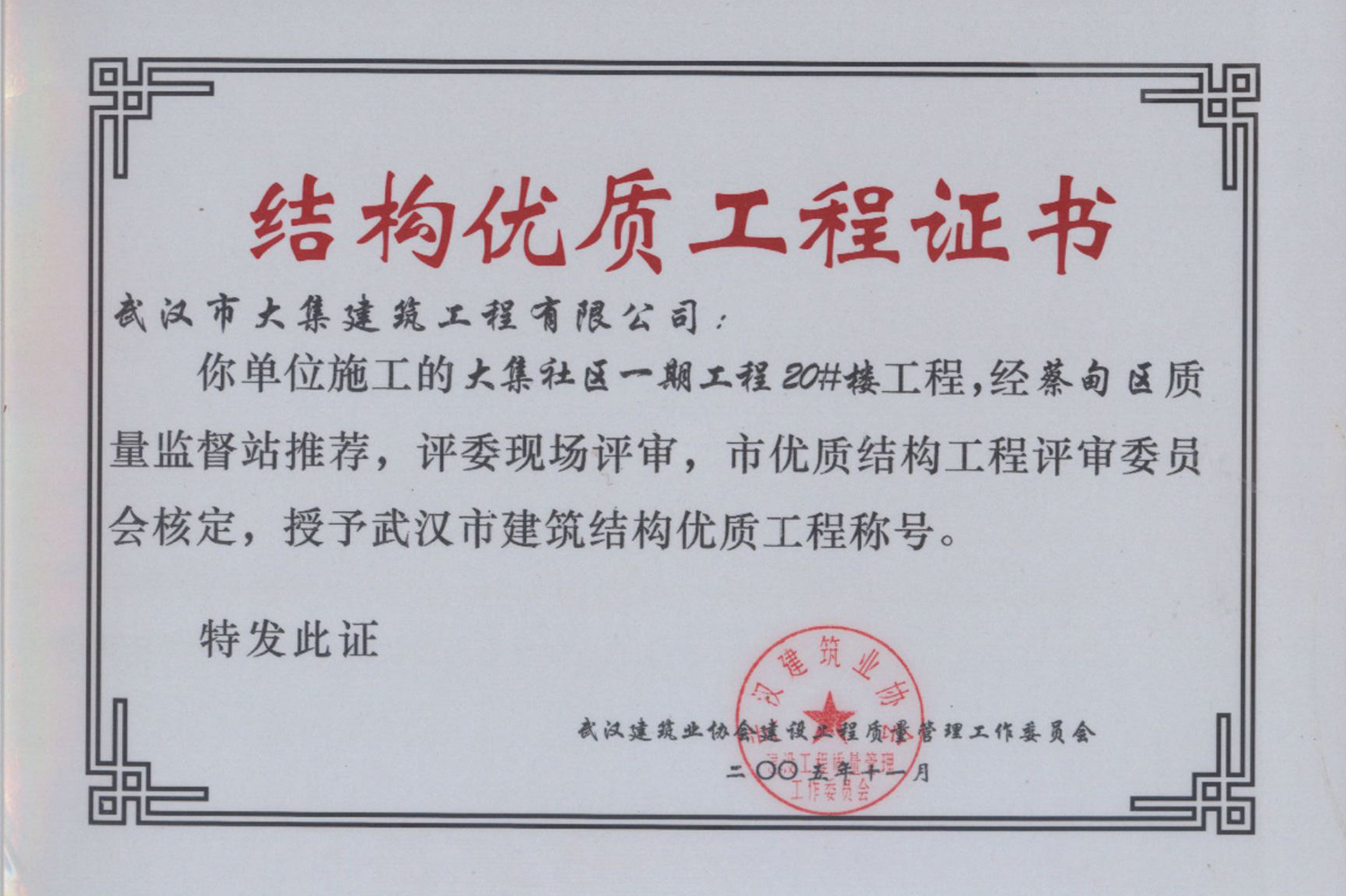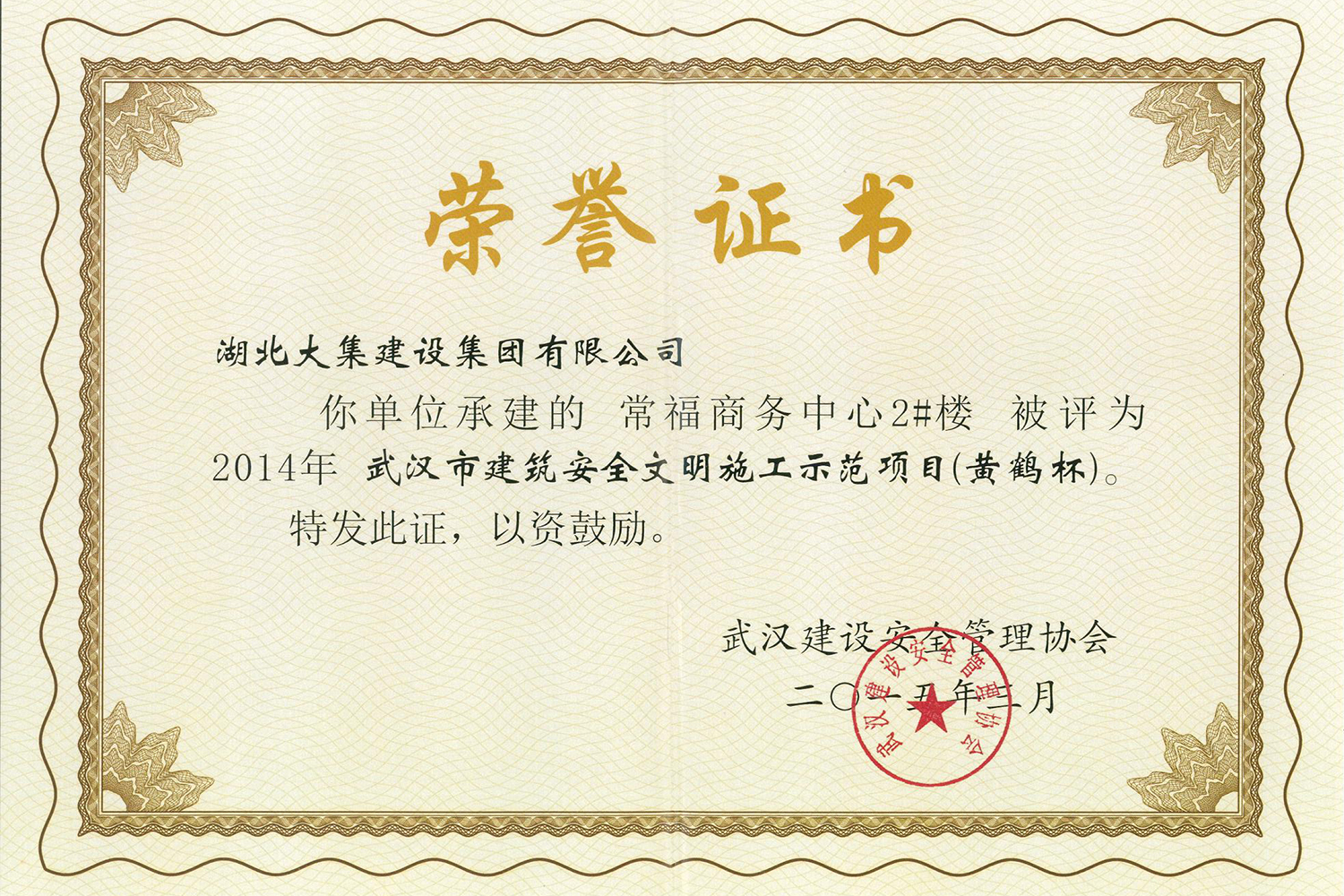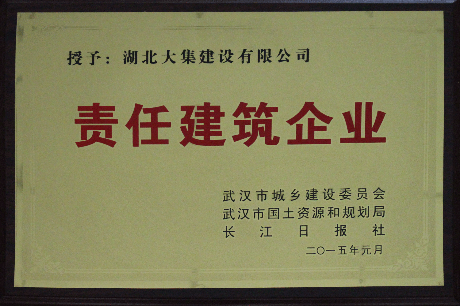 集團在發(fā)展壯大的同時,堅持守法經(jīng)營、依法納稅,堅持履行社會責任,多年來積極投身社會公益事業(yè)。省、市、區(qū)行業(yè)主管部門連續(xù)多年授予公司為“武漢地區(qū)建筑業(yè)AAA信譽企業(yè)”、“武漢地區(qū)建筑業(yè)優(yōu)秀企業(yè)”、“武漢市最具成長性民營建筑企業(yè)”、“勞動保障守法誠信A級單位”等榮譽,多次被省、市工商局評為“守合同重信用”企業(yè),多年被地方政府授予“納稅貢獻獎”。