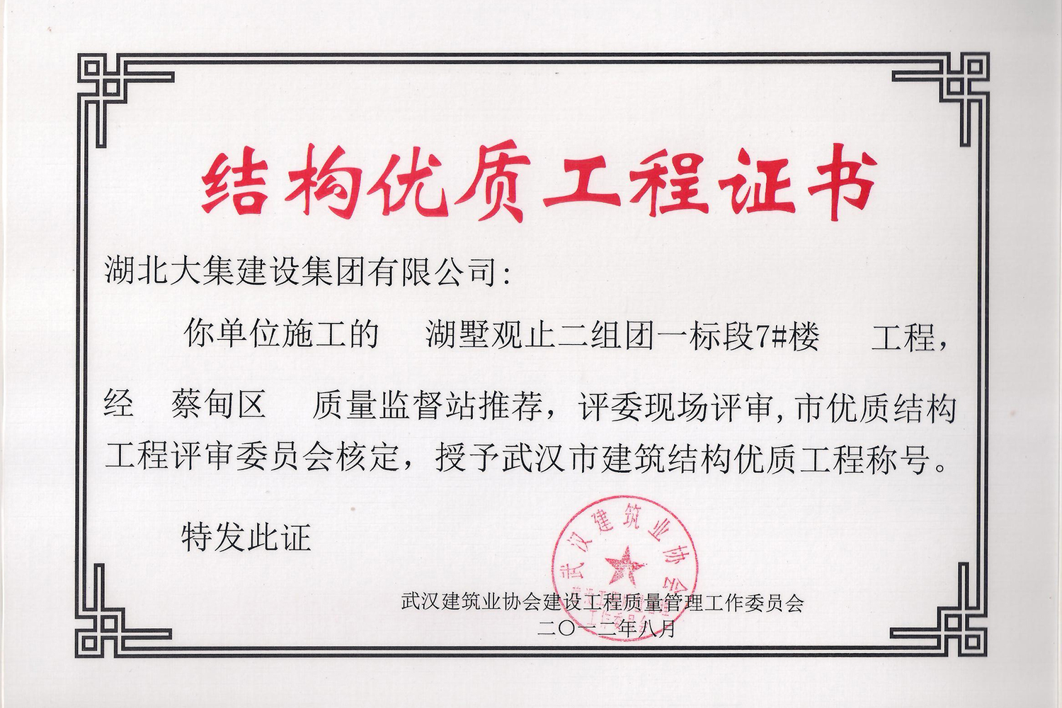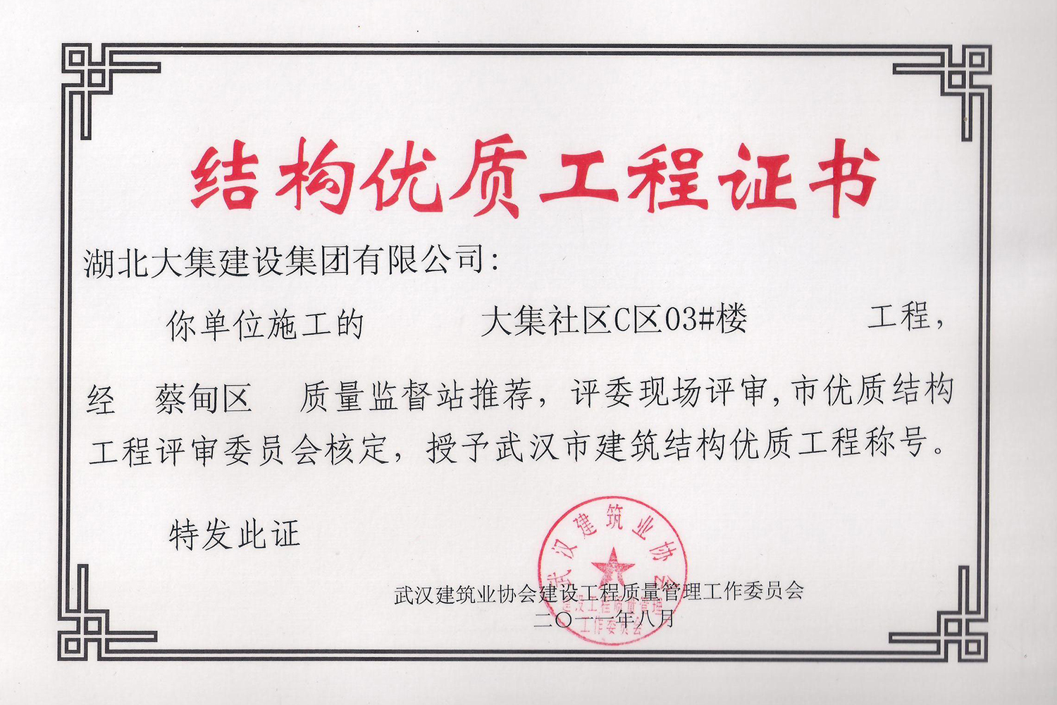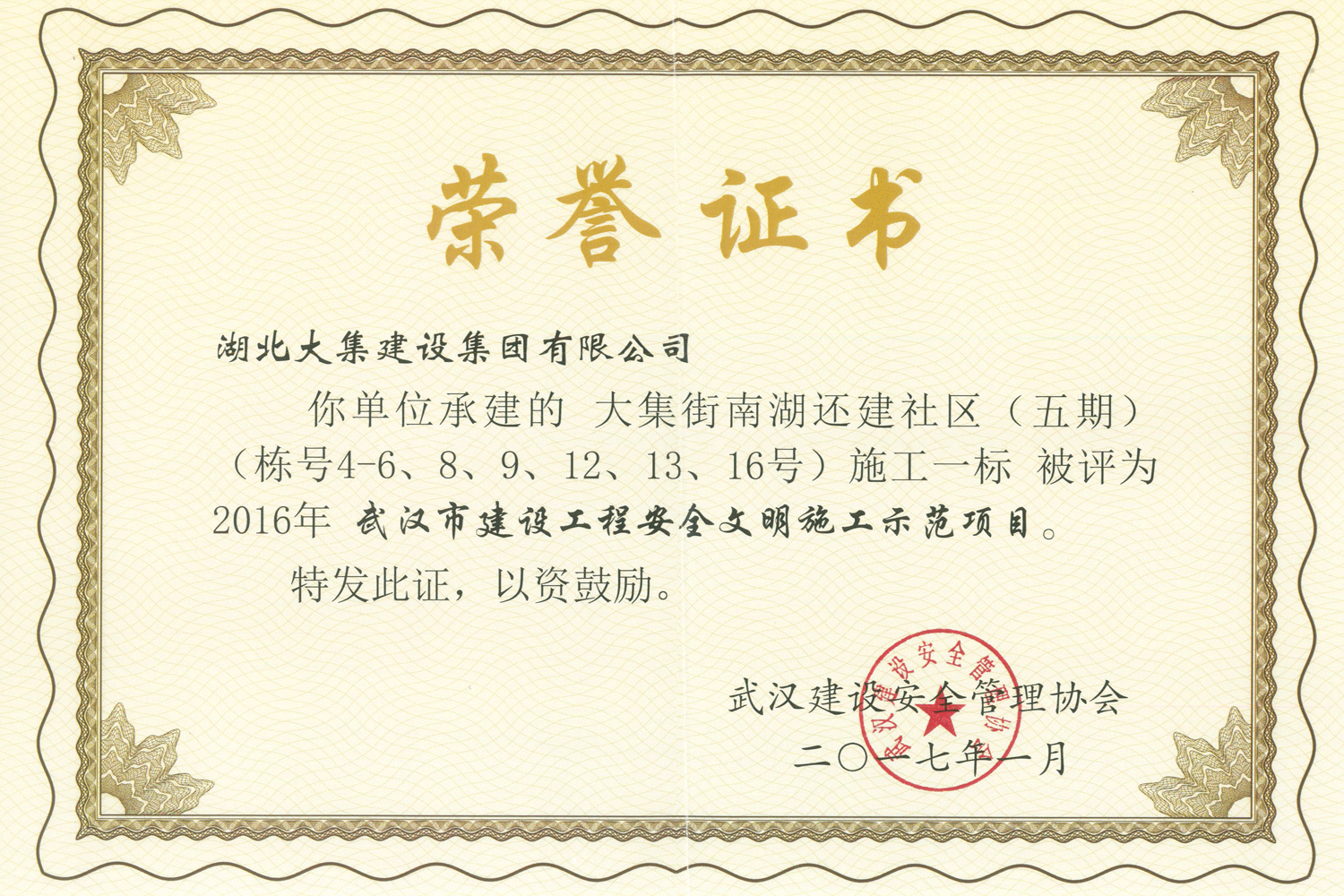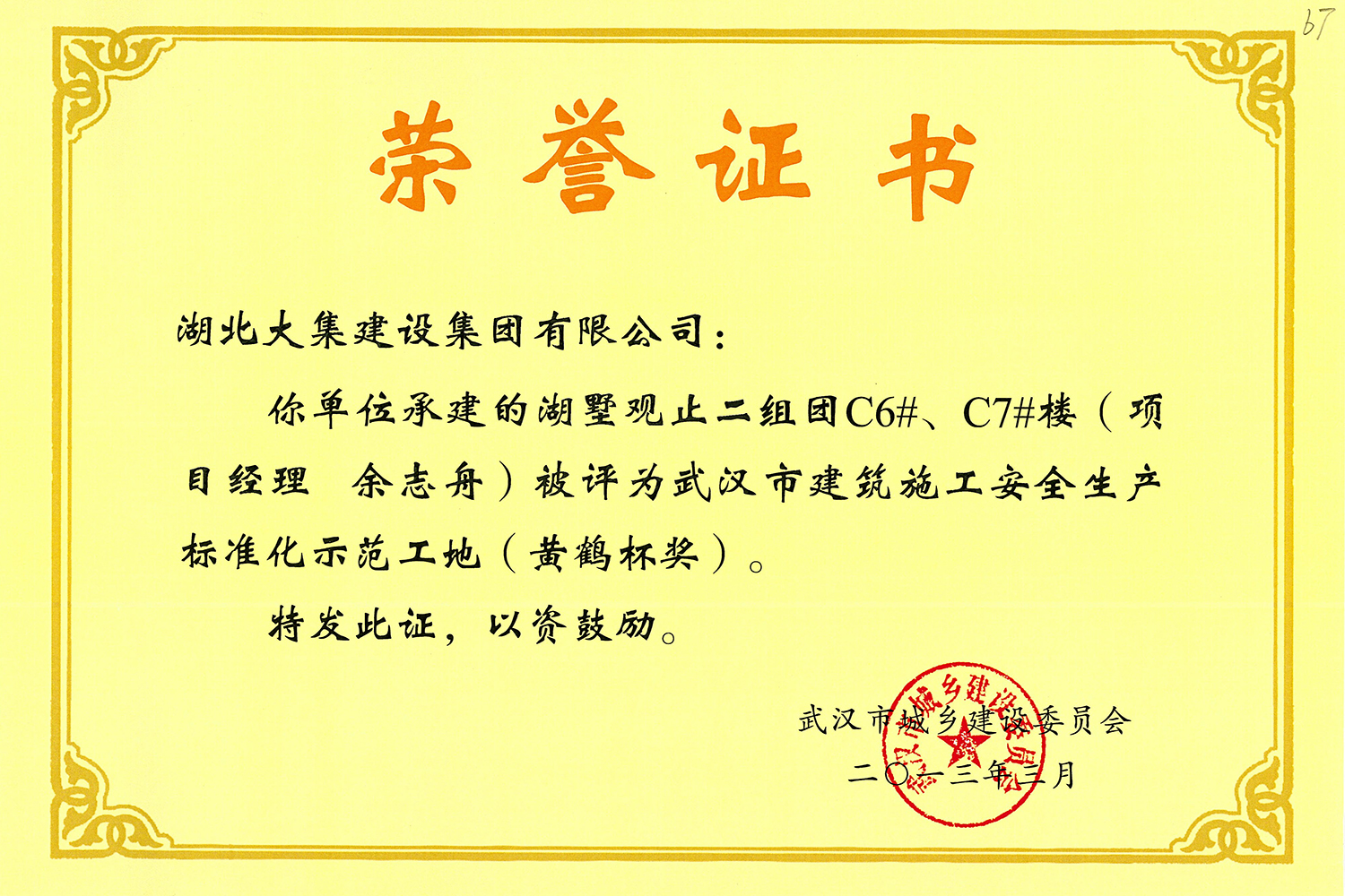 集團秉持“安全是紅線,質(zhì)量是品牌,文明施工是形象”的企業(yè)宗旨,不斷加強全面管理,注重提高自身素質(zhì),以完美的履約、優(yōu)良的質(zhì)量、滿意的服務(wù),贏得了信譽。近年來,湖北大集建設(shè)集團先后與中石化集團、中鐵上海工程局、中建八局、中鐵十二局、碧桂園集團、世茂集團、綠地集團等央企、國企、地方標志性建設(shè)單位合作,先后承建了“碧桂園知音豪庭”項目、“碧桂園光谷云境”項目、“大集G區(qū)蓮溪花園”項目等多個高層住宅小區(qū);承建了世茂龍灣46#、47#、48#地塊、花博匯桃李春風二期等多個精品高端別墅群項目;承建了“南湖中學”、“南湖小學”、“南湖幼兒園”、“博奧幼兒園”等多個教育配套項目;承建了“孝感英眾超算終端科技產(chǎn)業(yè)園”、“鴻盛華全球航空服務(wù)產(chǎn)業(yè)園”、“盟盛汽車產(chǎn)業(yè)園”、“中原印務(wù)晶毅”等多個具有特殊設(shè)備安裝需求的鋼、混結(jié)構(gòu)工業(yè)廠房項目;承建了“常福商務(wù)廣場”等大型商業(yè)綜合體;承建了后官湖綠道二期、三期,常貴路西延伸段、黃星大道等多條大型道路市政項目;自主開發(fā)了“聚盛晶尚”住宅項目,改善人居環(huán)境,引領(lǐng)綠色棲居新領(lǐng)域;所有工程嚴格執(zhí)行施工作業(yè)全過程質(zhì)量、安全管理,多個項目被省、市級監(jiān)管單位授予“省結(jié)構(gòu)優(yōu)質(zhì)”、“省安全文明施工現(xiàn)場”、“市結(jié)構(gòu)優(yōu)質(zhì)”、“市安全文明施工示范項目”、“樣板工地”等榮譽稱號。