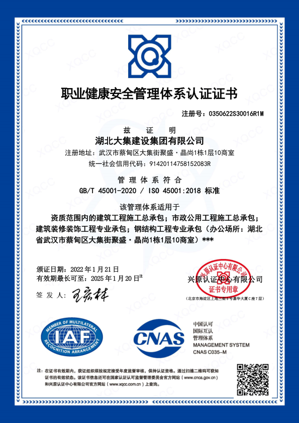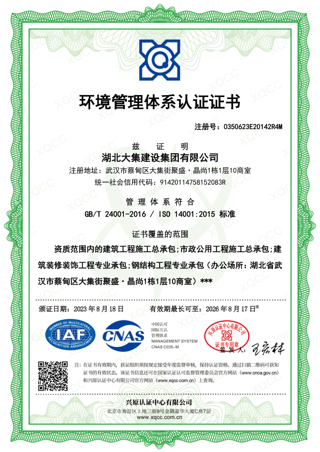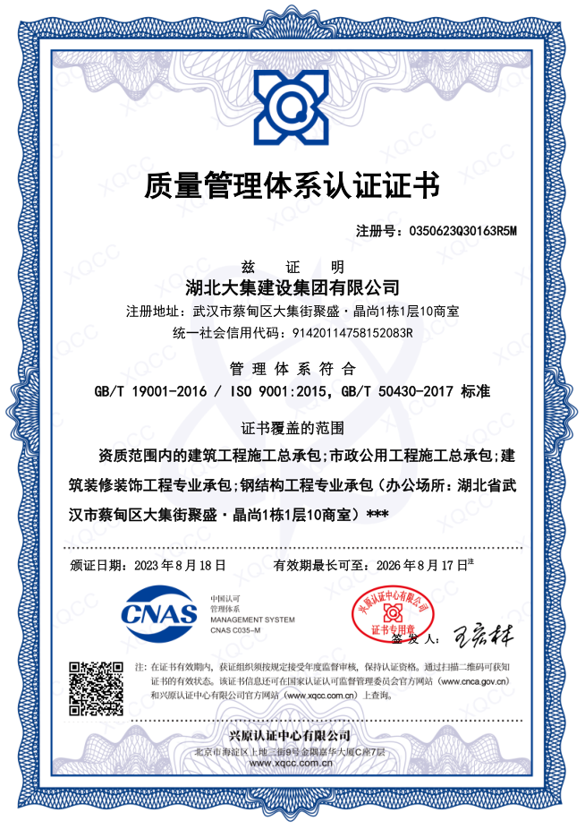 湖北大集建設(shè)集團有限公司成立于1990年,注冊資本10500萬元,是武漢市蔡甸區(qū)本土建筑行業(yè)的龍頭企業(yè),在行業(yè)內(nèi)具有一定的品牌影響力。擁有建筑工程施工總承包一級、市政公用工程施工總承包一級、橋梁工程專業(yè)承包一級、隧道工程專業(yè)承包一級、輸變電工程專業(yè)承包一級、鋼結(jié)構(gòu)工程專業(yè)承包一級、地基基礎(chǔ)工程專業(yè)承包一級、電子與智能化工程專業(yè)承包一級、建筑裝修裝飾工程專業(yè)承包一級等多項資質(zhì)?,F(xiàn)已形成“建筑施工、園林綠化、文化旅游、房地產(chǎn)開發(fā)與物業(yè)管理”四大產(chǎn)業(yè)格局,并通過了行業(yè)和國家質(zhì)量管理體系、環(huán)境管理體系和職業(yè)健康安全管理體系認證,三大安全管理體系日臻完善,是一家綜合力較強的綜合性建筑施工企業(yè)。