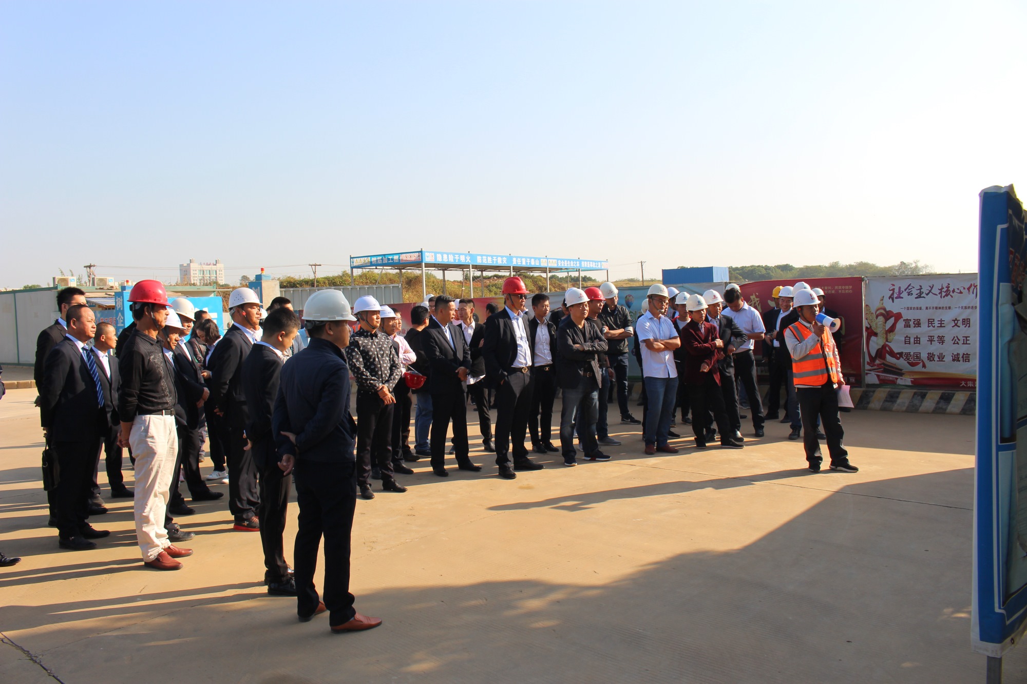 上午,所有參會人員首先來到大沌南路項目施工現(xiàn)場進行參觀。在大沌南路項目負責人何廣州的帶領(lǐng)下,大家對大沌南路項目的工程概況、安全文明施工、新工藝、工程質(zhì)量與進度管控等方面的情況進行了詳細地觀摩與學習。