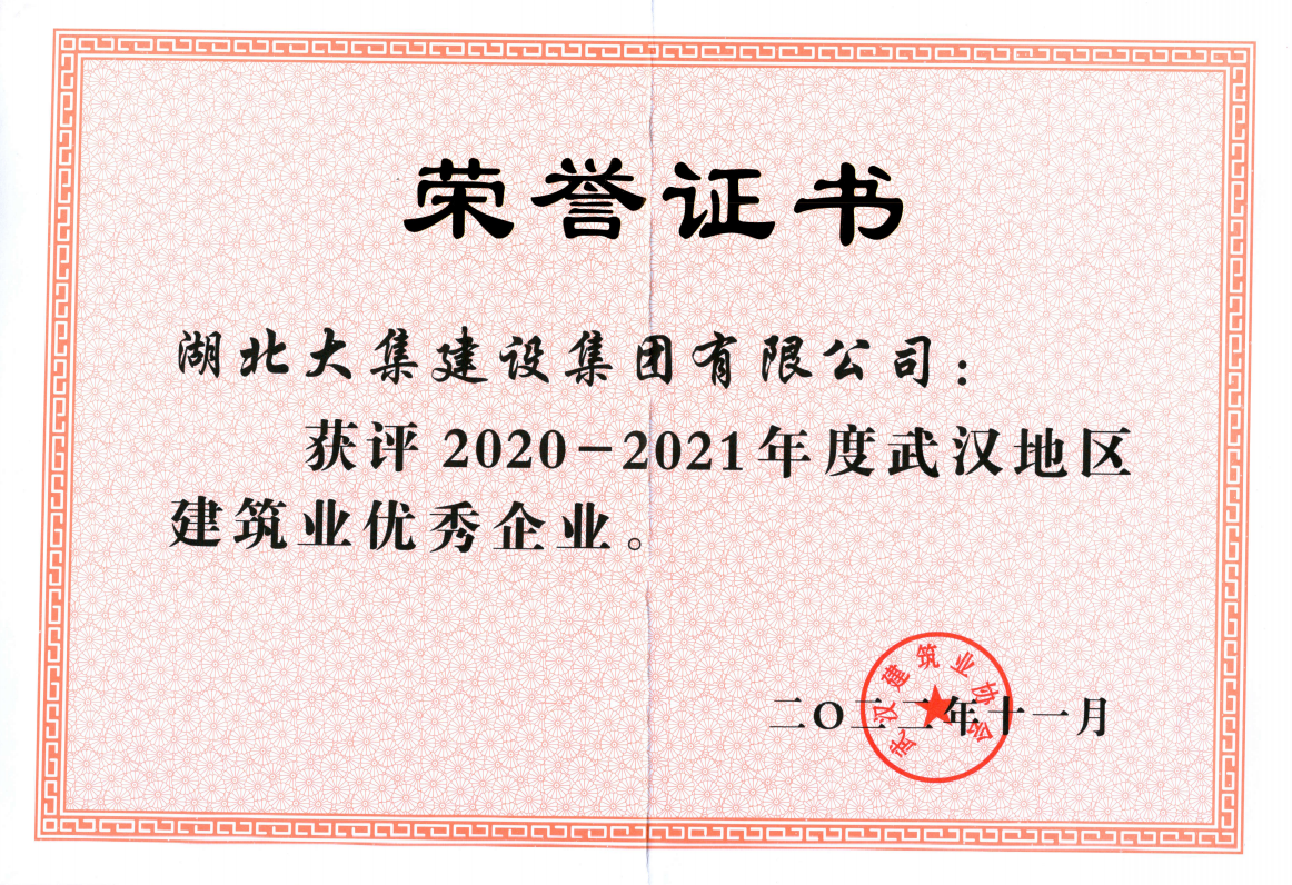 近日,武漢建筑業(yè)協(xié)會(huì)發(fā)布2020-2021年度武漢地區(qū)建筑業(yè)“四優(yōu)”選樹結(jié)果。湖北大集建設(shè)集團(tuán)憑借優(yōu)秀的綜合實(shí)力和扎實(shí)的管理水平,公司獲評(píng)“武漢地區(qū)建筑業(yè)優(yōu)秀企業(yè)”榮譽(yù),公司董事長(zhǎng)徐濤榮獲“武漢地區(qū)建筑業(yè)優(yōu)秀企業(yè)家”稱號(hào)。