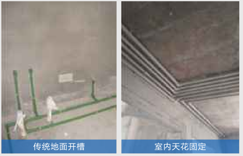 戶(hù)內(nèi)水管安裝按照以往的做法會(huì)在建筑找平層開(kāi)槽再進(jìn)行預(yù)埋,裝修完成后如遇到滲漏水很難進(jìn)行維修。為實(shí)現(xiàn)無(wú)后顧之憂(yōu),全部設(shè)置在天花,公共部位進(jìn)行吊頂掩蓋,戶(hù)內(nèi)走梁交接陰角,用木盒子裝修掩蓋,這樣不但解后期維修問(wèn)題,樓板地面不再開(kāi)槽,大大減少建筑找平厚度,使戶(hù)內(nèi)凈高空間增大。