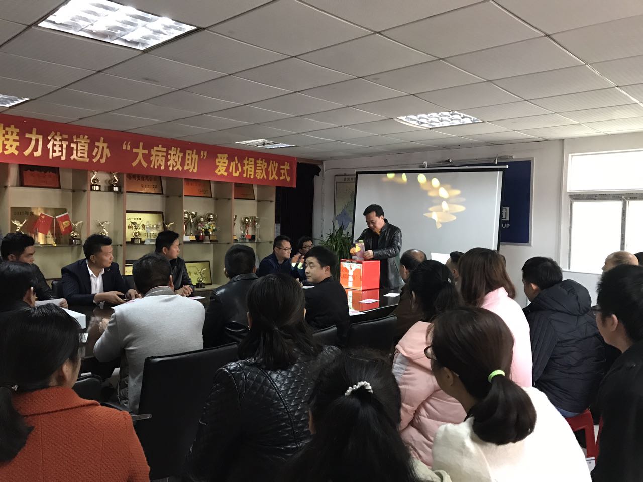 3月21日,湖北大集建設集團響應街道辦“大病救助”愛心捐款活動,在集團總部舉行愛心捐款活動儀式,陰沉的天氣并未阻擋大集人愛心奉獻的熱情,活動現(xiàn)場人員爆滿,熱情洋溢,公司領導,項目經(jīng)理和各位員工積極響應捐款倡議,踴躍參與,一時間原本寬敞的會議室被擠的水泄不通。