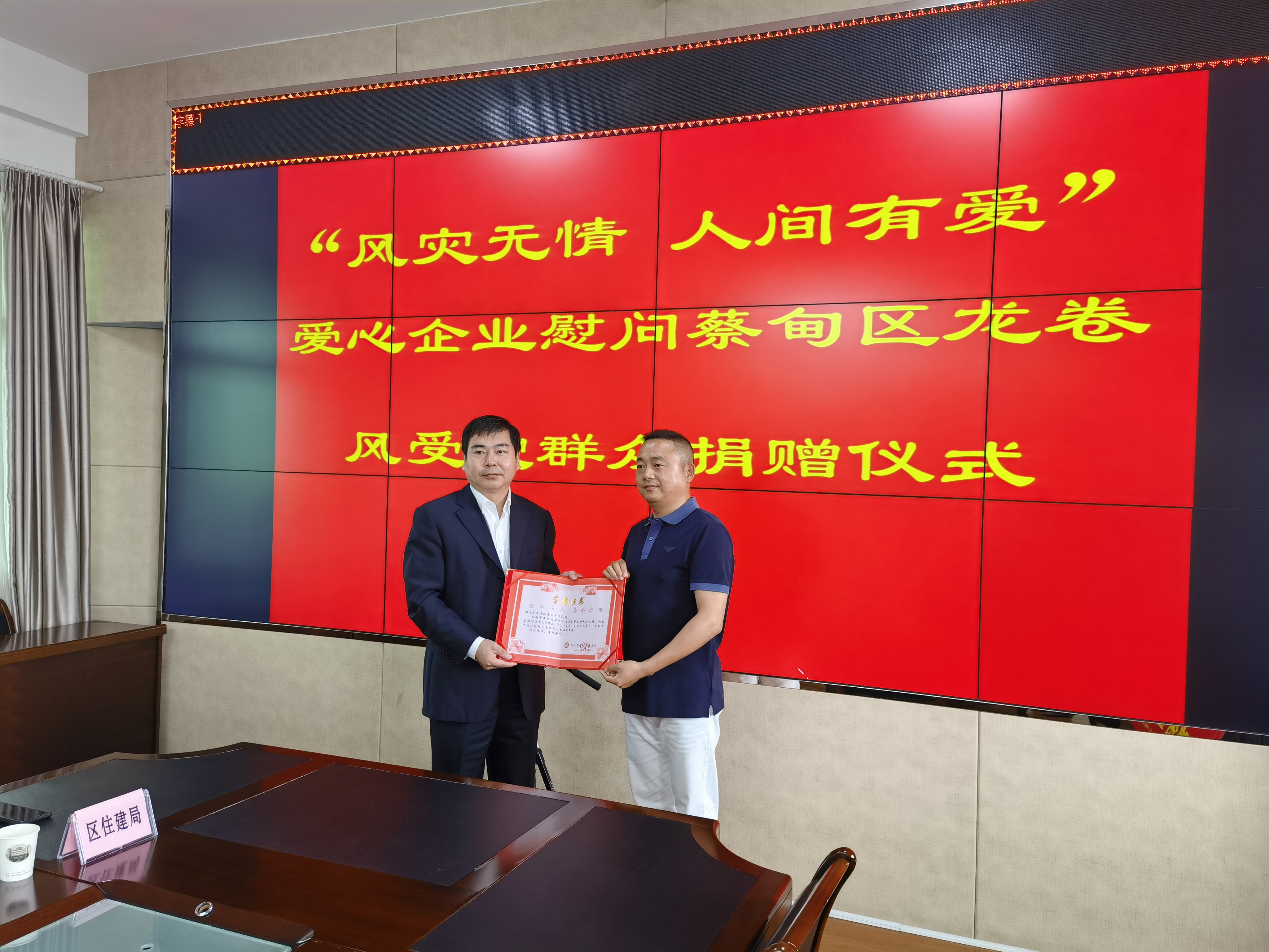 在捐贈儀式現(xiàn)場,徐濤董事長表示,一方有難,八方支援,能為災(zāi)區(qū)人民盡一份綿薄之力,是我們湖北大集建設(shè)集團(tuán)義不容辭的責(zé)任,希望這筆愛心款項能給災(zāi)區(qū)人民帶來幫助,早日重建家園,恢復(fù)生產(chǎn)。